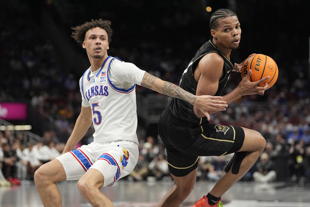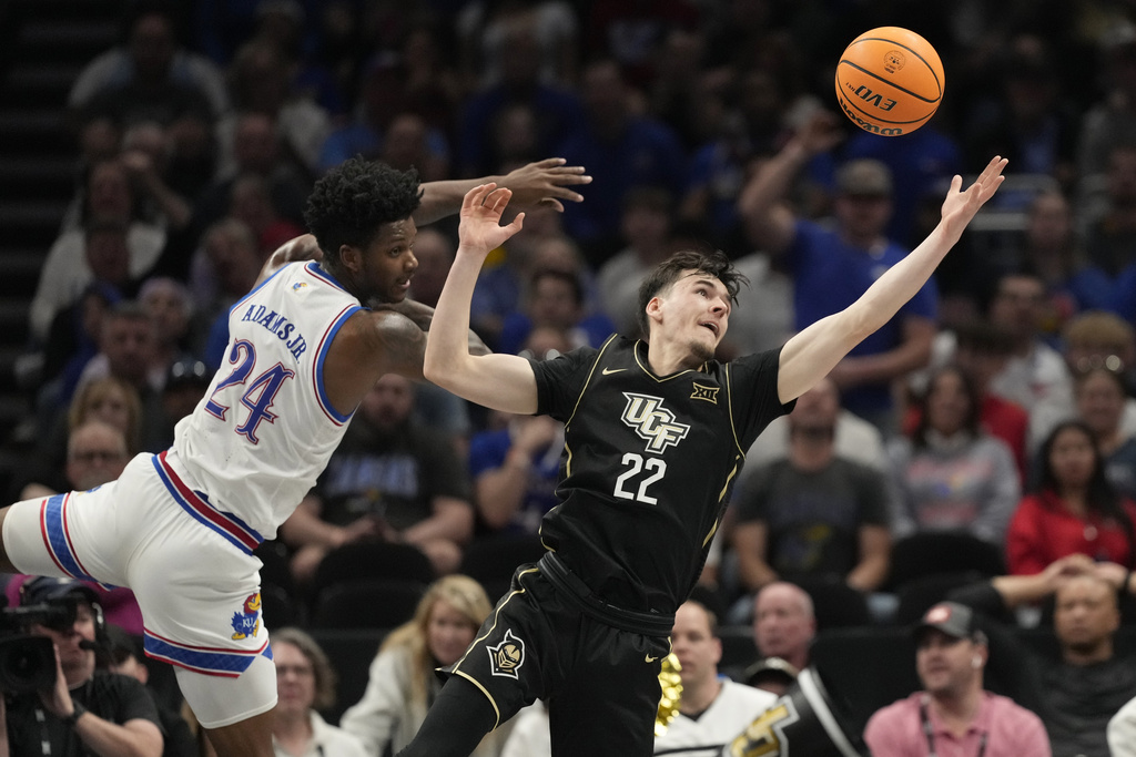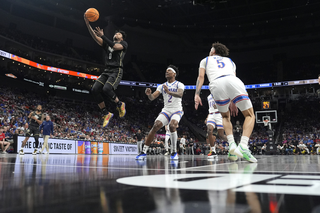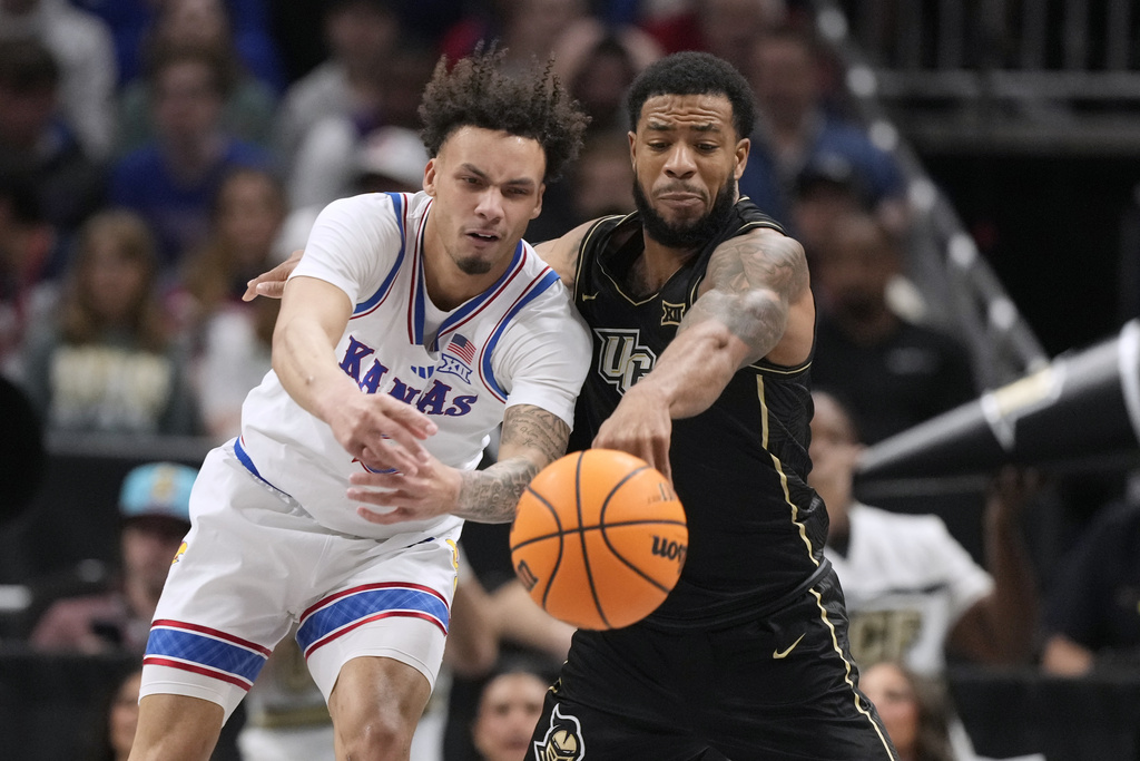 KANSAS CITY, Mo. (AP) — Hunter Dickinson scored 23 points with 13 rebounds, Zeke Mayo added 24 points, and the sixth-seeded Kansas team made a comeback to push the game into overtime. They then managed to hold off the No. 14 seed UCF with a final score of 98-94 during the second round of the Big 12 Tournament on Wednesday night.